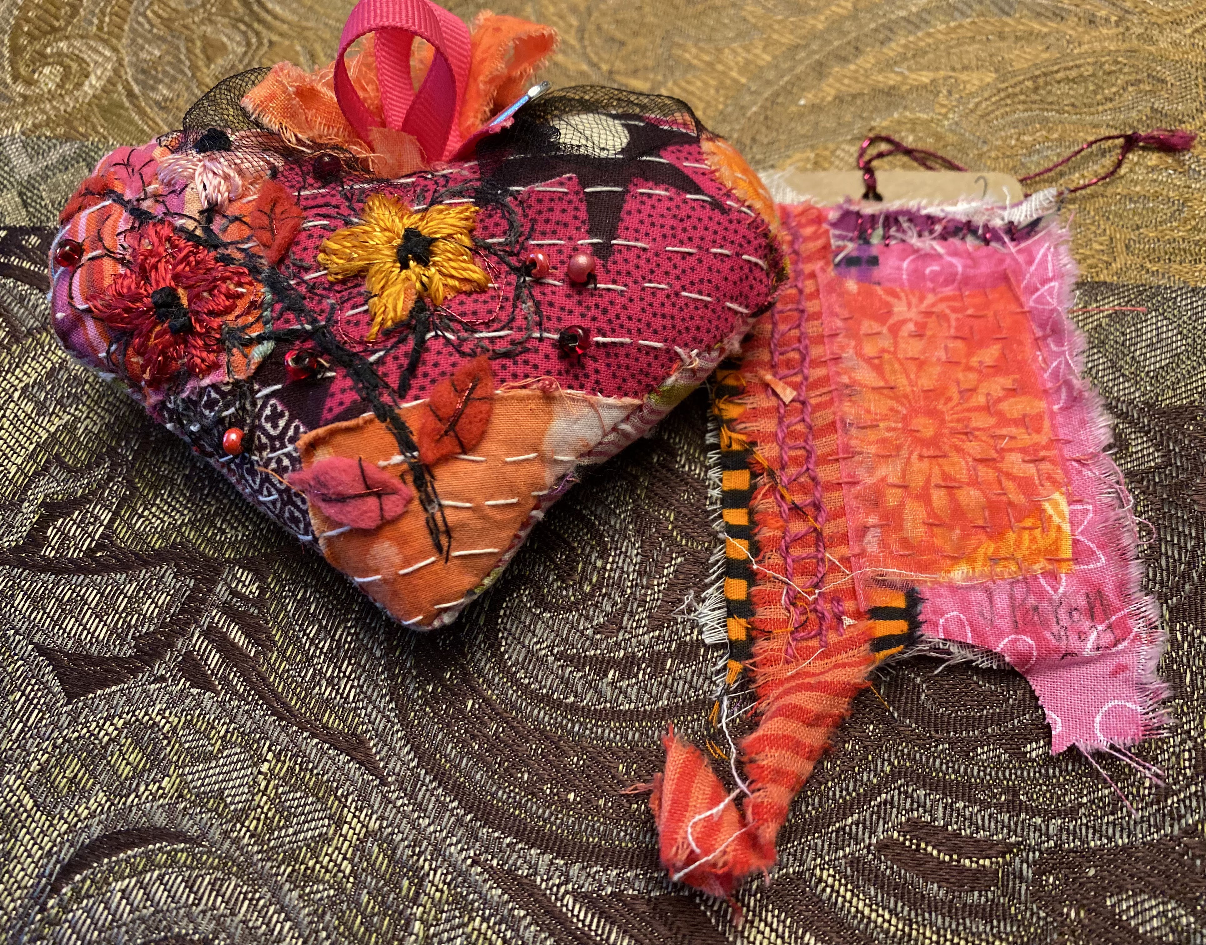 I still have a few pieces left from the fabric strip to make another tag to match a heart I started. What do you make with your scraps?